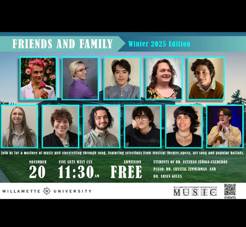 Esteban's studio performs a concert at Hudson Hall, Willamette University. March 2025.