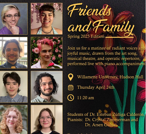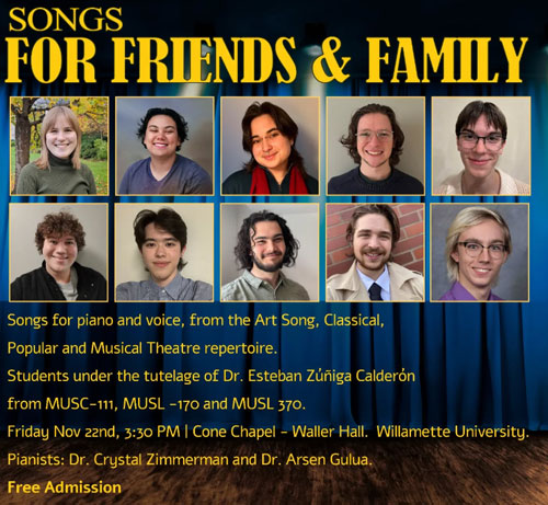 Los alumnos de Esteban interpretan canciones para voz y piano en Willamette University. Noviembre 2025.